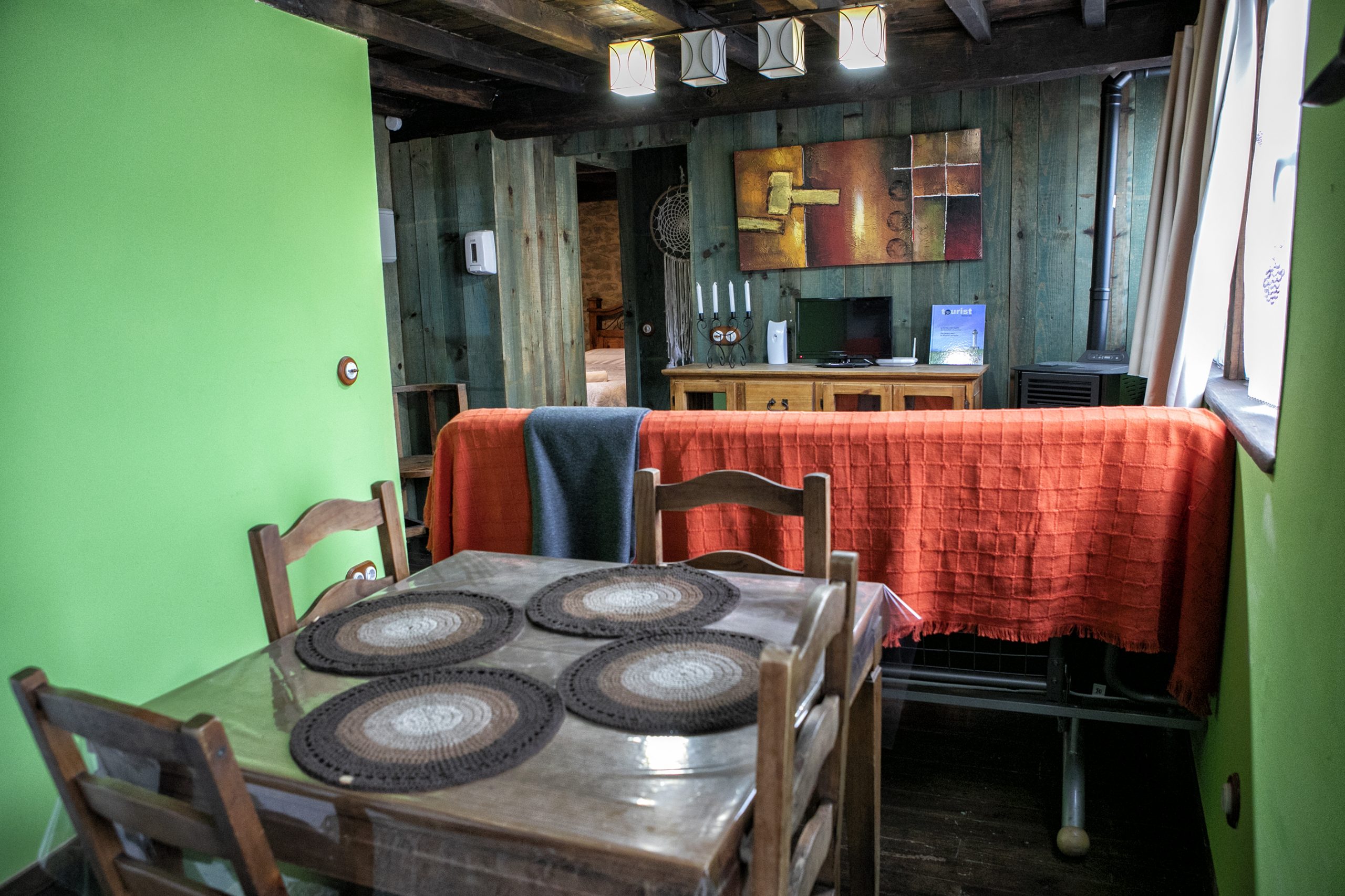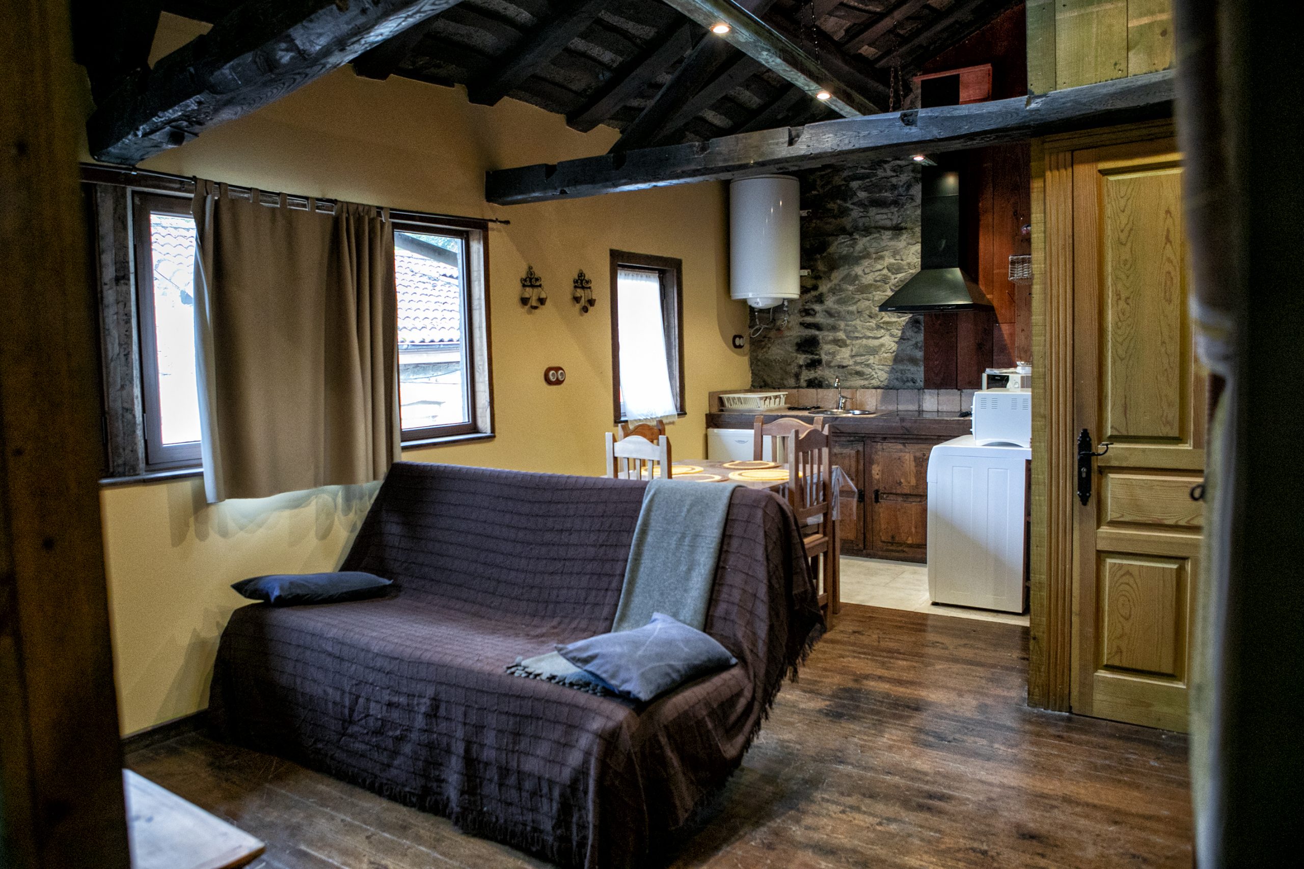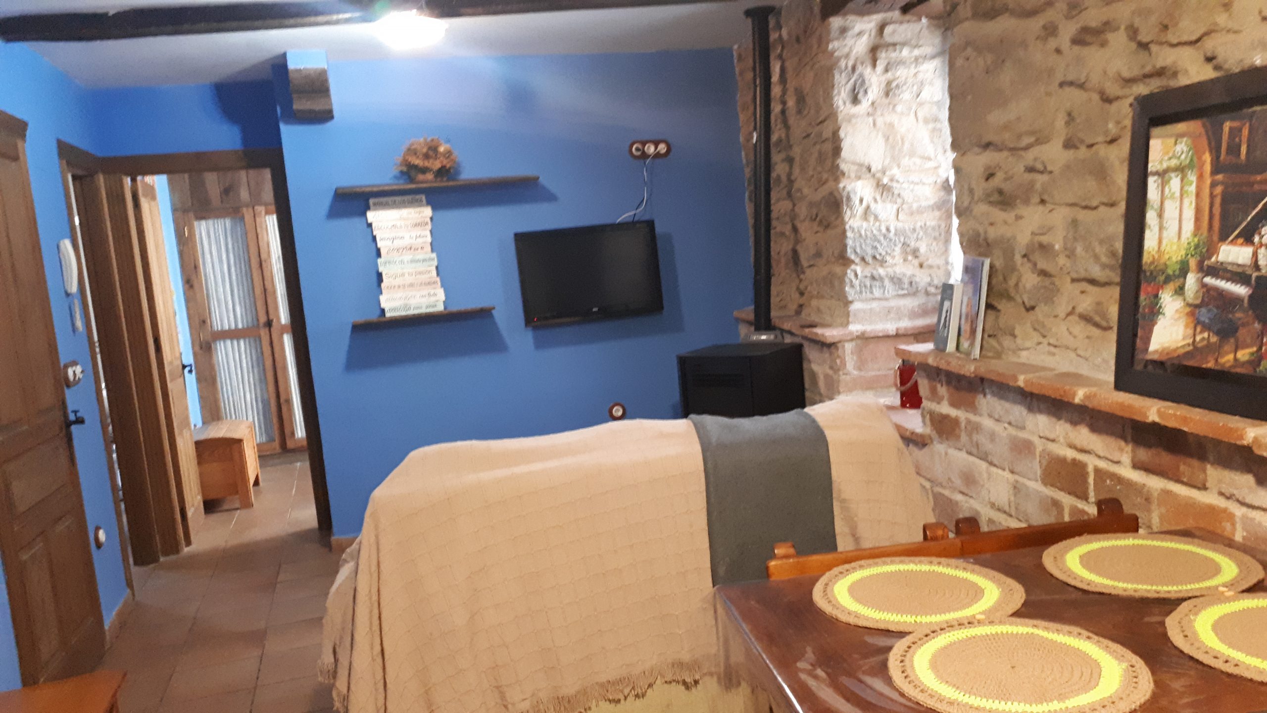 - Es un apartamento de 47M2 con habitación con cama de matrimonio de 135×200, armario empotrado, un habitación con dos camas de 90×200,comedor office con cocina totalmente equipada en menaje, y un baño con ducha.